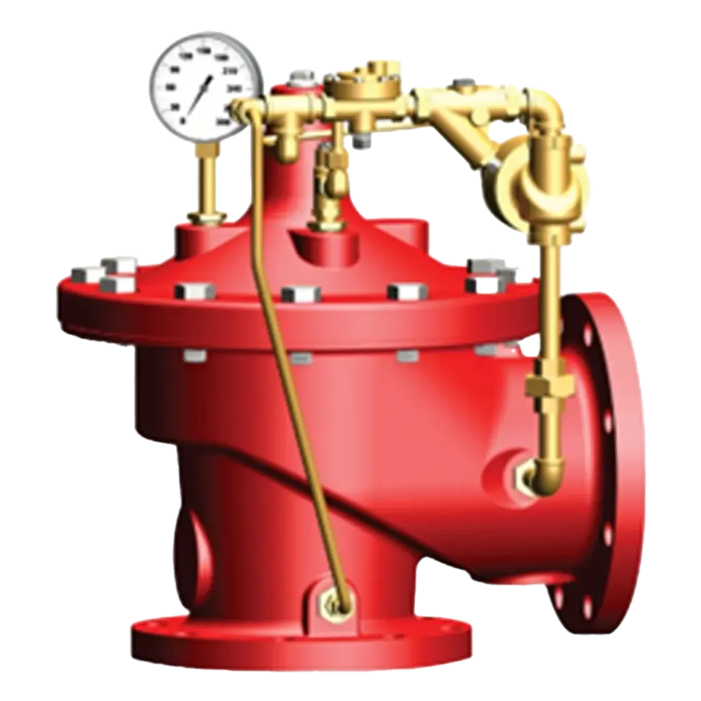 Previene sobrepresiones causadas por la posible sobrevelocidad de la bomba contra incendios. Se instala entre la brida de descarga de la bomba y la válvula check. Trabajamos con marcas reconocidas como Cla-Val, OCV, y Zurn.
