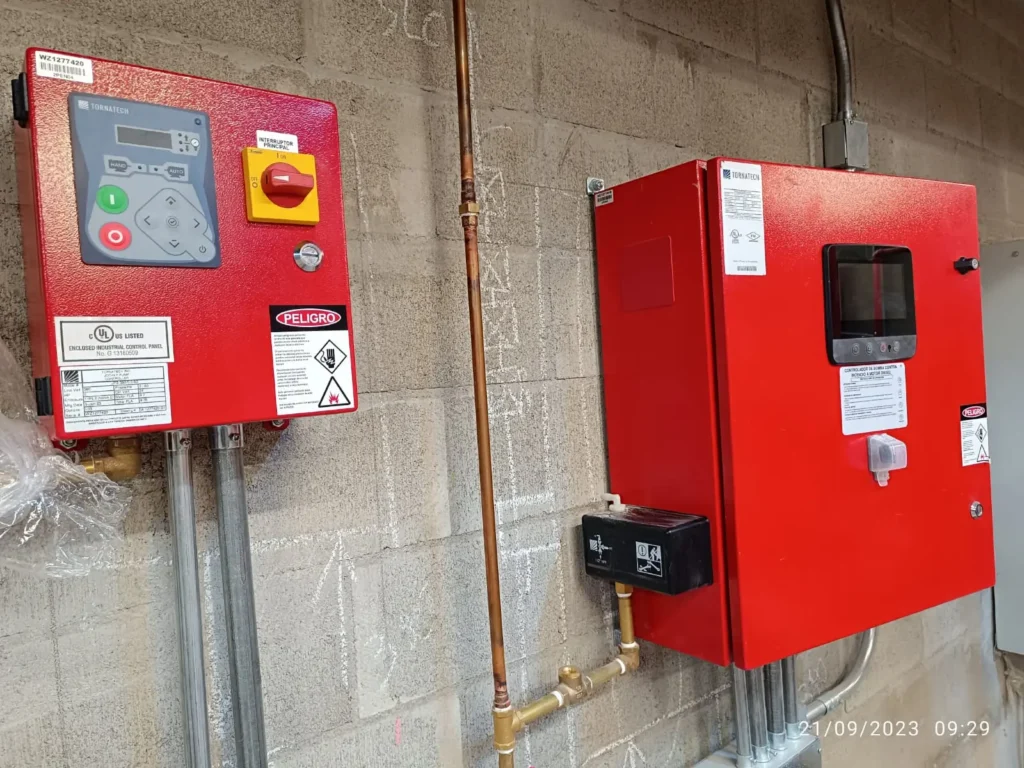 Los tableros de control para bombas contra incendios están diseñados para accionar el motor de la bomba, ofreciendo diferentes métodos de arranque: automático mediante transmisores de presión, manual con botoneras en el gabinete, y de emergencia con una palanca en los tableros de electrobombas. Trabajamos con las mejores marcas del mercado, como Tornatech, Firetrol, y Eaton, asegurando la máxima eficiencia y seguridad en el funcionamiento de los sistemas contra incendios.